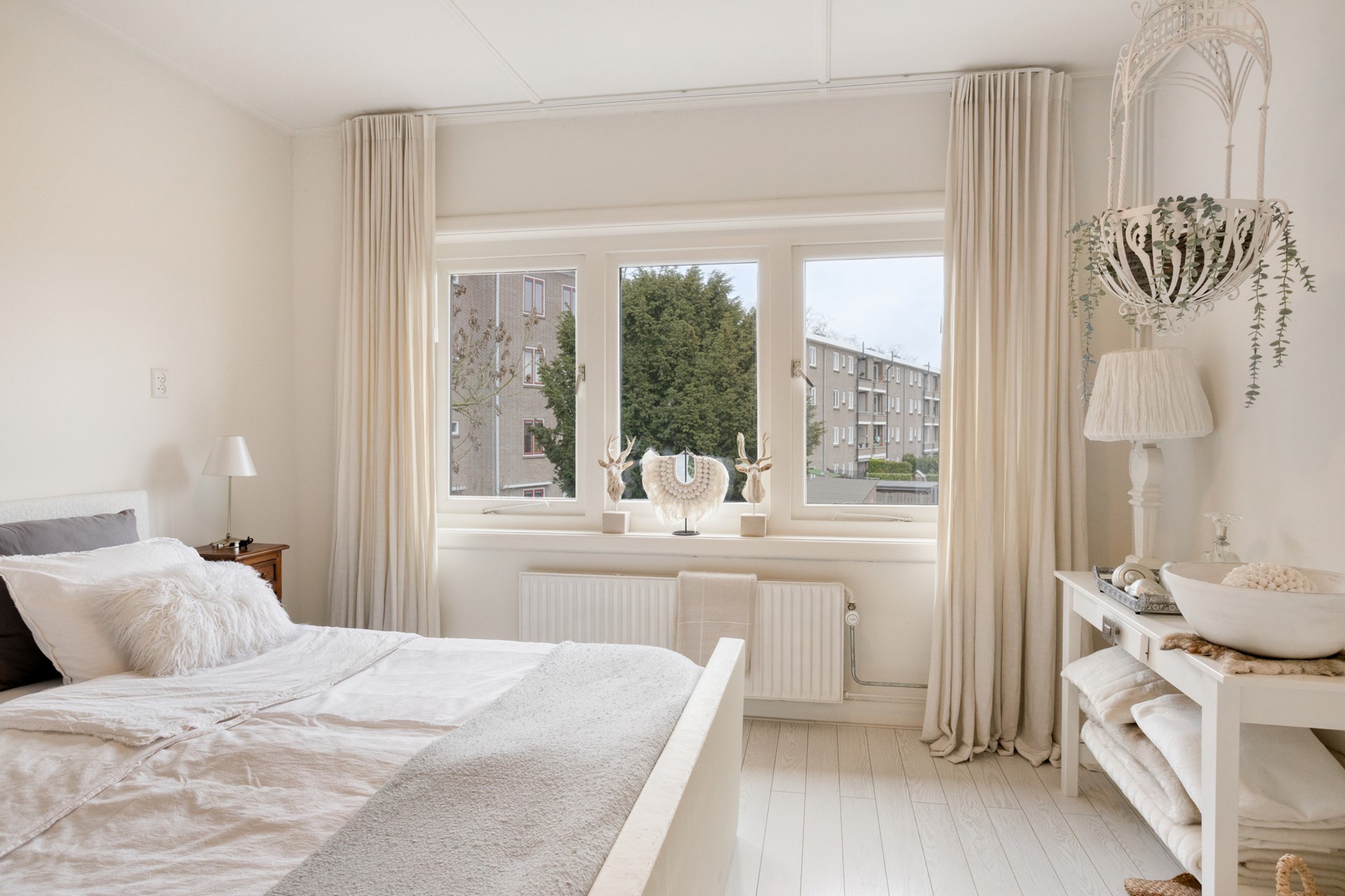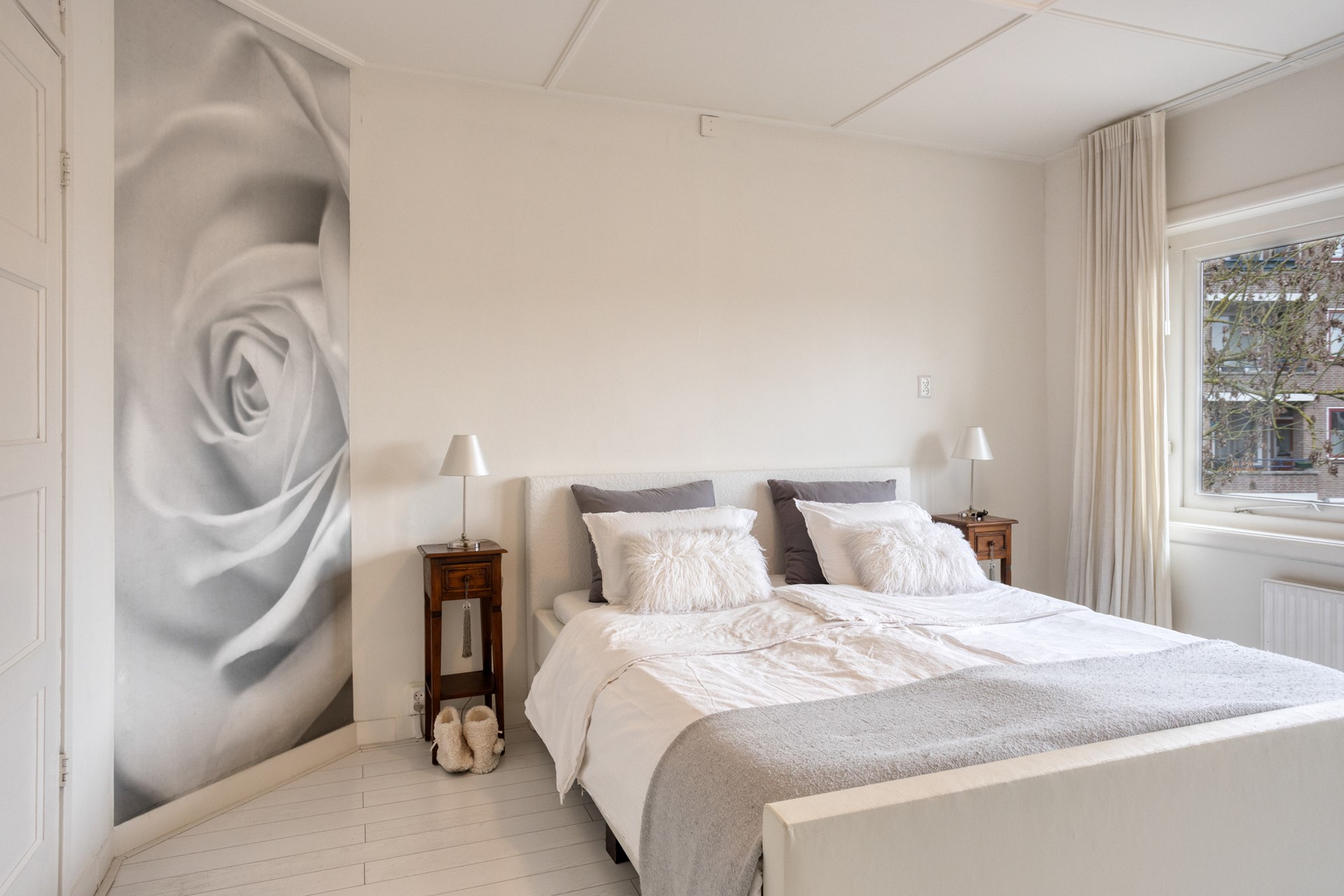 Bovenin het huis is echt een geweldige kamer, een serene ruimte met een hoog plafond. Het vele licht valt binnen door twee grote dakkapellen. Deze slaapkamer heeft de uitstraling van een luxe loft, er is een tweede badkamer met een vrijstaand bubbelbad, een inloop(regen)douche en een wastafelmeubel. Naast de badkamer is een berging en ook is er een aparte ruimte voor de wasmachine.