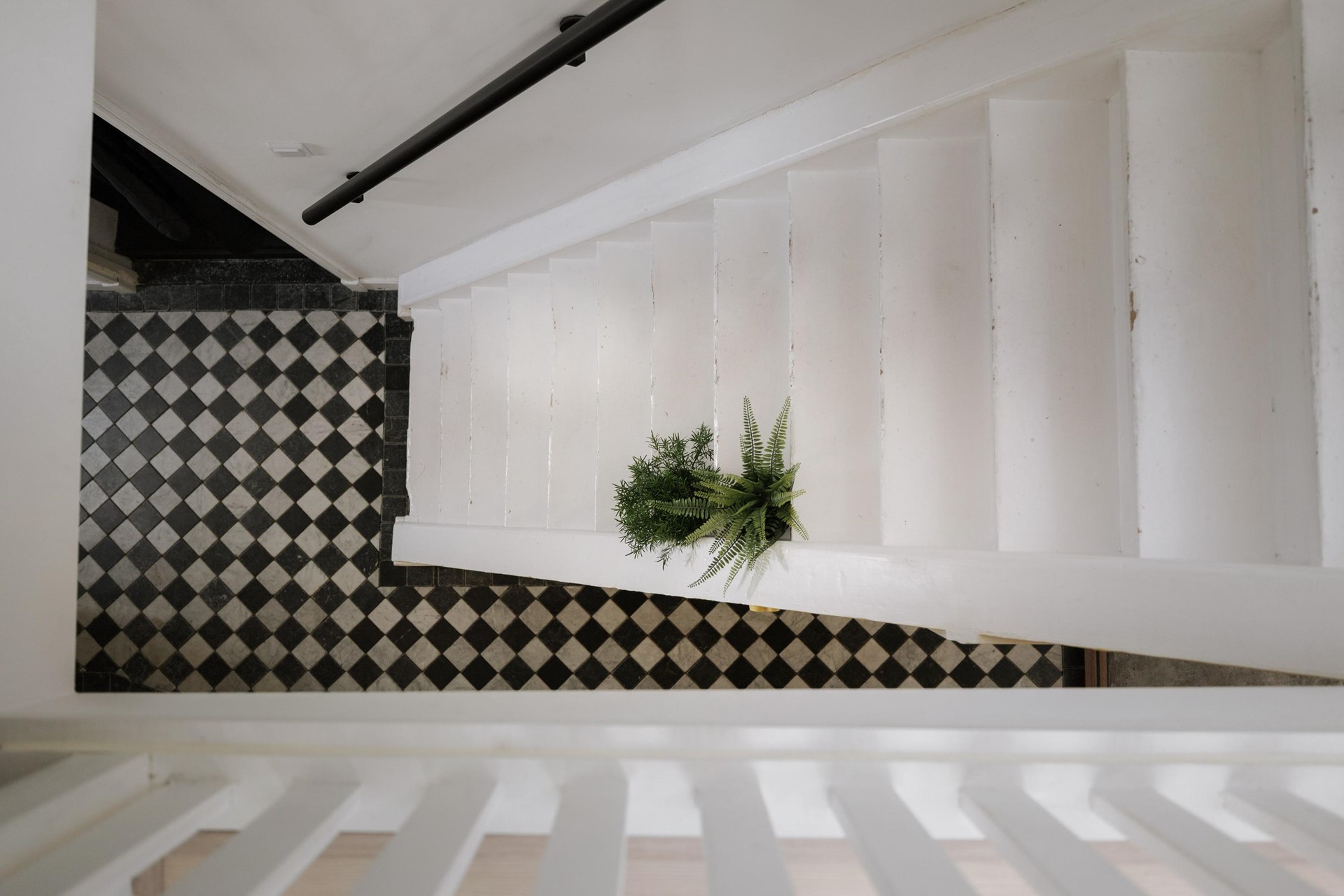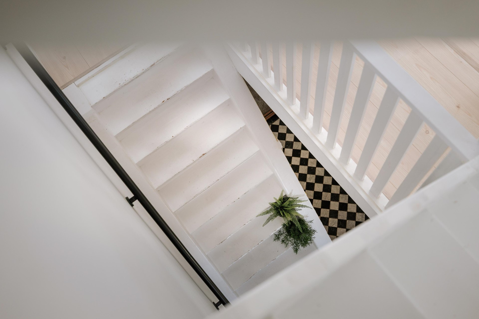 Middenin het huis is een flinke hal met mooie vloertegels, de trap naar boven en een ruim, modern toilet.