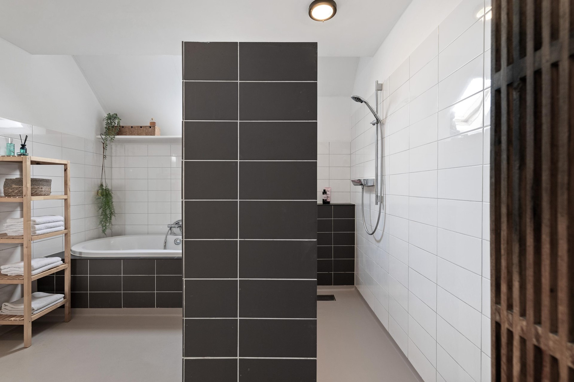 Op de eerste verdieping zijn twee lichte slaapkamers, beide met lekker ruime ingebouwde kasten. De badkamer heeft vloerverwarming, een wastafelmeubel, een ligbad, en een inloopdouche. Op de overloop is een apart toilet, dus nooit stress in de ochtendspits.