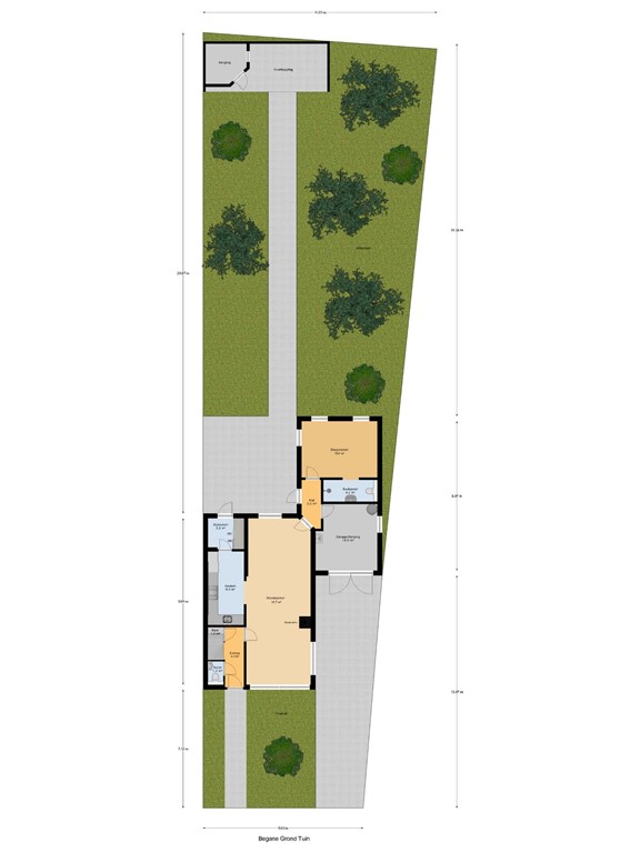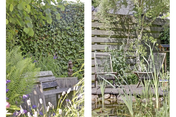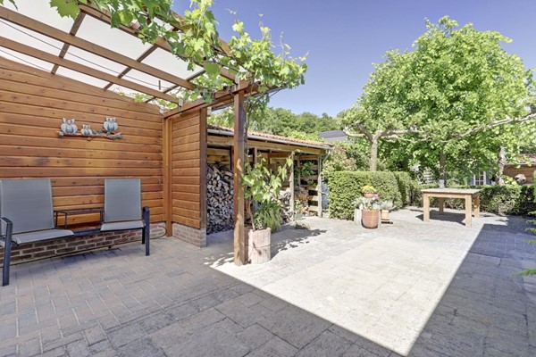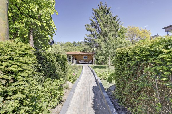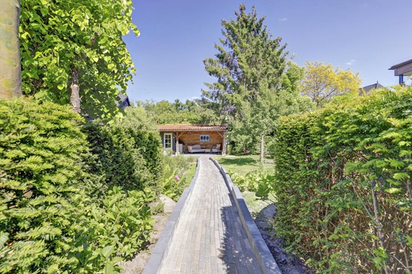 Dan is er nog een derde deur en die brengt je in een prachtige tuin van 25 meter diep en 12 meter breed, ingericht met terrassen, gazon, bloemenborders, een terrasoverkapping met een tuinhuisje. Het tuinpad is geschikt gemaakt voor rolstoelers. Deze plek is een oase, ook als je geen groene vingers hebt zal je veel plezier beleven aan deze tuin.
