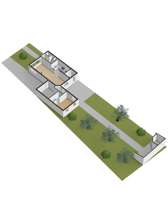 De eerste deur gaat naar de berging/garage, vanaf de oprit ook te bereiken via de openslaande deuren.