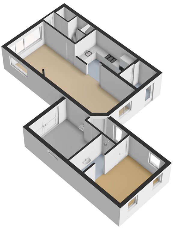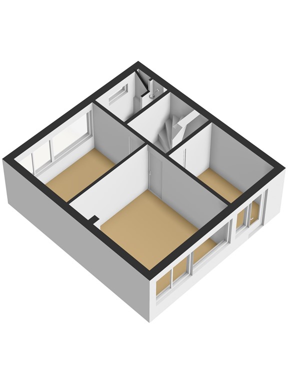 Achterin de woonkamer is de deur naar een gang met drie deuren: